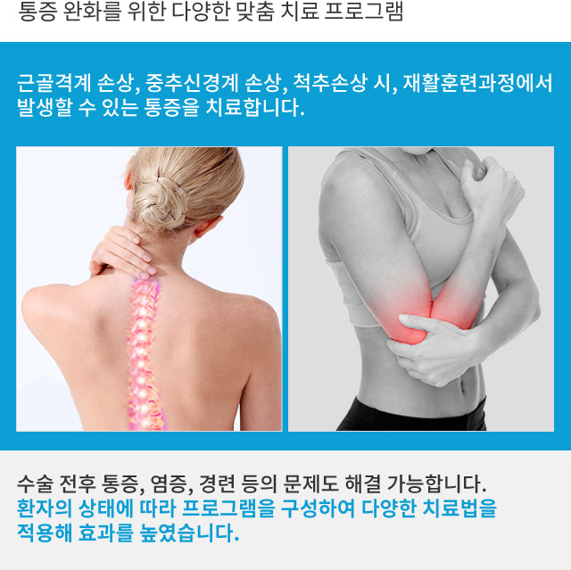 통증을 없애주는다양한 맞춤 치료법을 적용